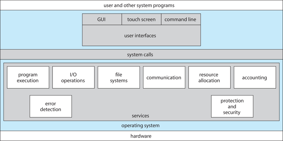 흔히 사용자들은 user interface인 GUI, touch screen, command line을 통해 서비스를 이용하며, 운영체제가 제공하는 서비스들에 직접 접근하여 사용하지 않고, system call을 통해 해당되는 서비스를 요청합니다.