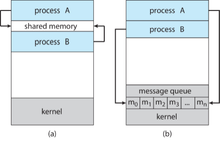 위와 같은 이유로 인해, Cooprating processes는 프로세스 간에 데이터를 주고 받을 수 있도록 하기 위해 IPC(Interprocess Communication) 메커니즘을 제공합니다.
