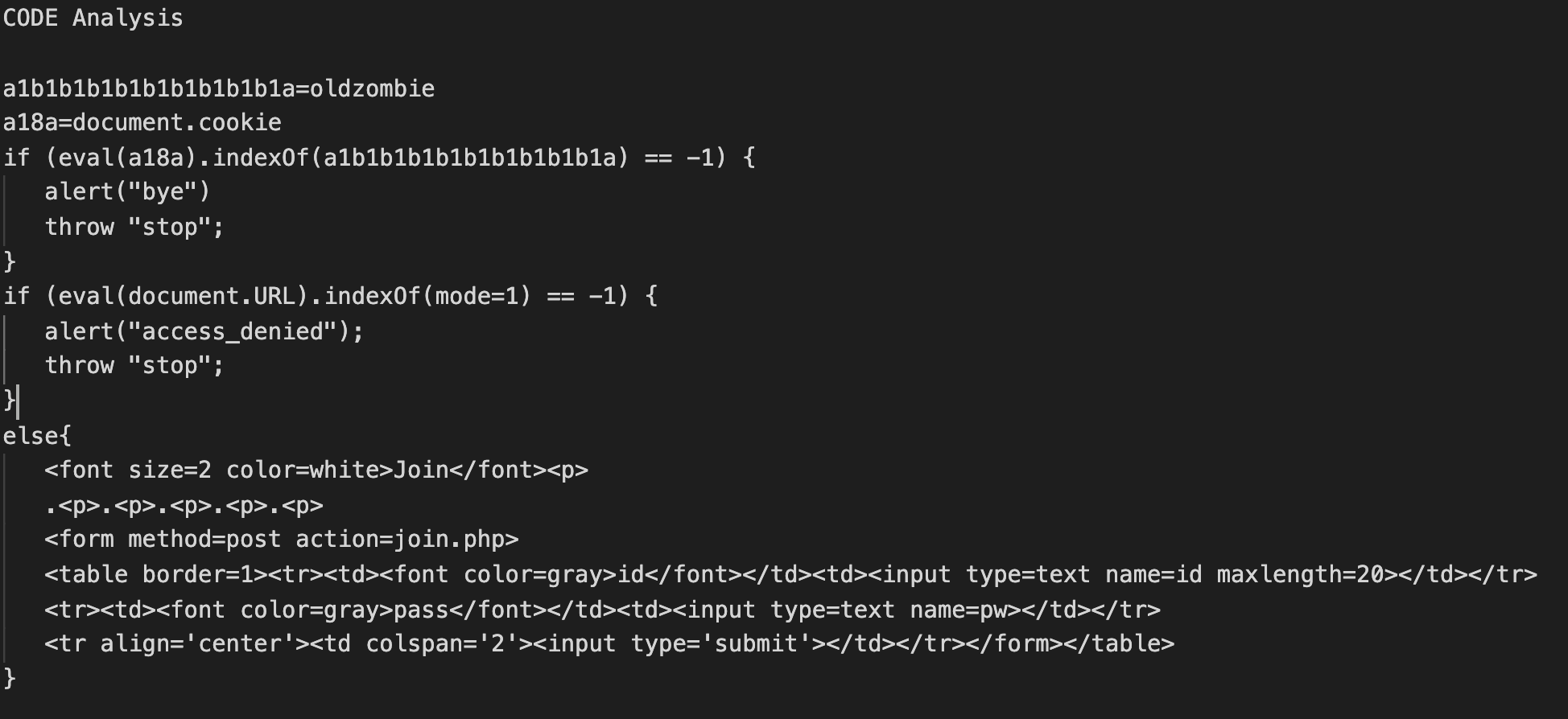print('if (eval('+lIIIIIIIIIIIIIIIIIIl+').indexOf('+lIllIllIllIllIllIllIllIllIllIl+') == -1) { \n alert("bye") \n throw "stop"; \n}')