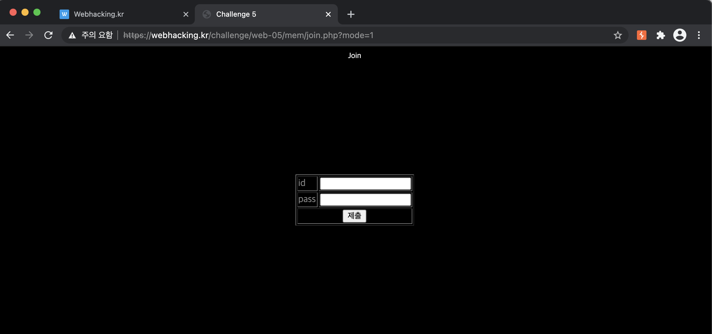 The method is that you enter the URL (https://webhacking.kr/challenge/web-05/mem/join.php)