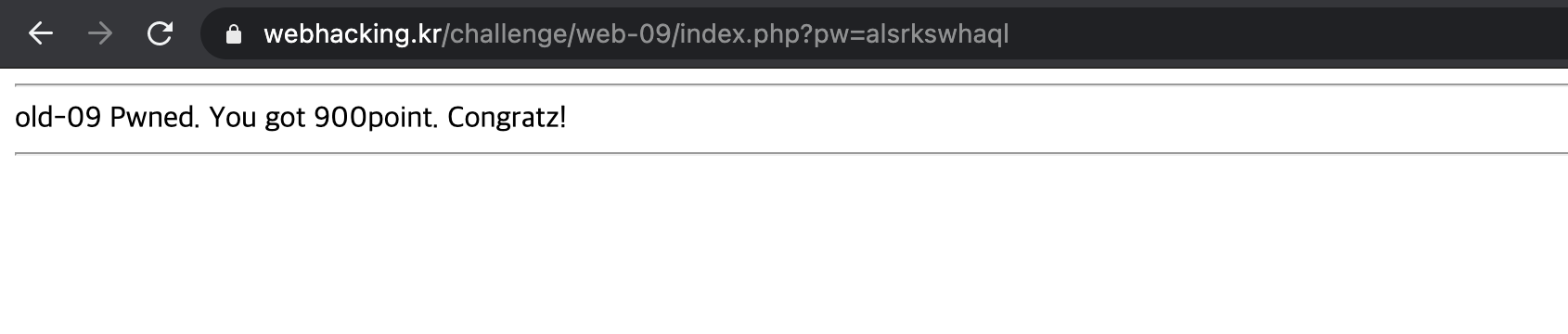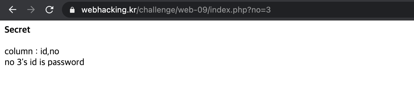 Then, the URL of the page is https://webhacking.kr/challenge/web-09/?no=1.
