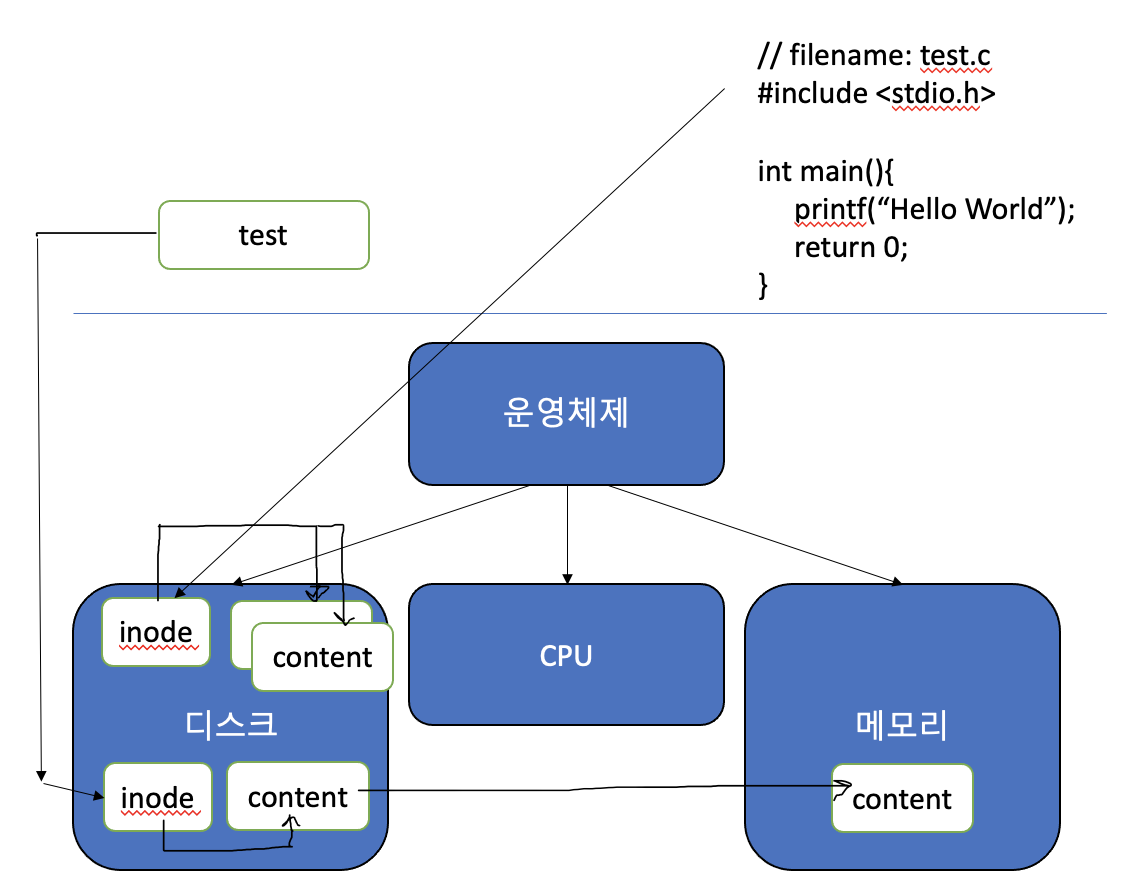 그럼, 이제 test.c 파일을 컴파일 한 후 실행하려고 할 때 운영체제는 어떠한 동작을 할까요?