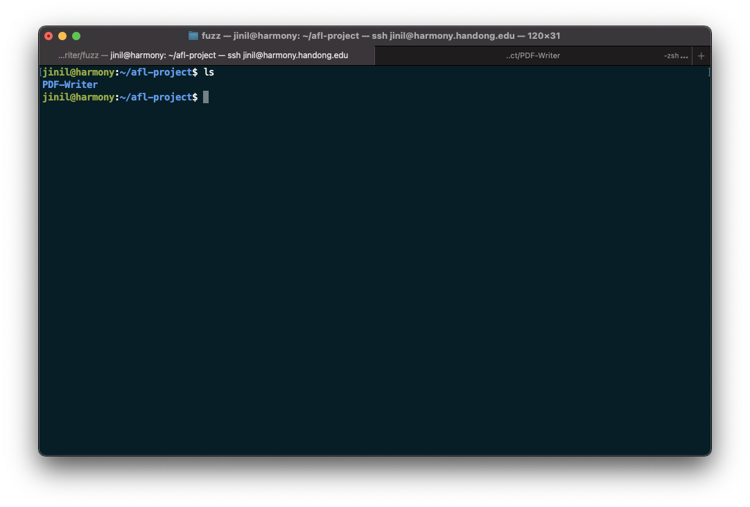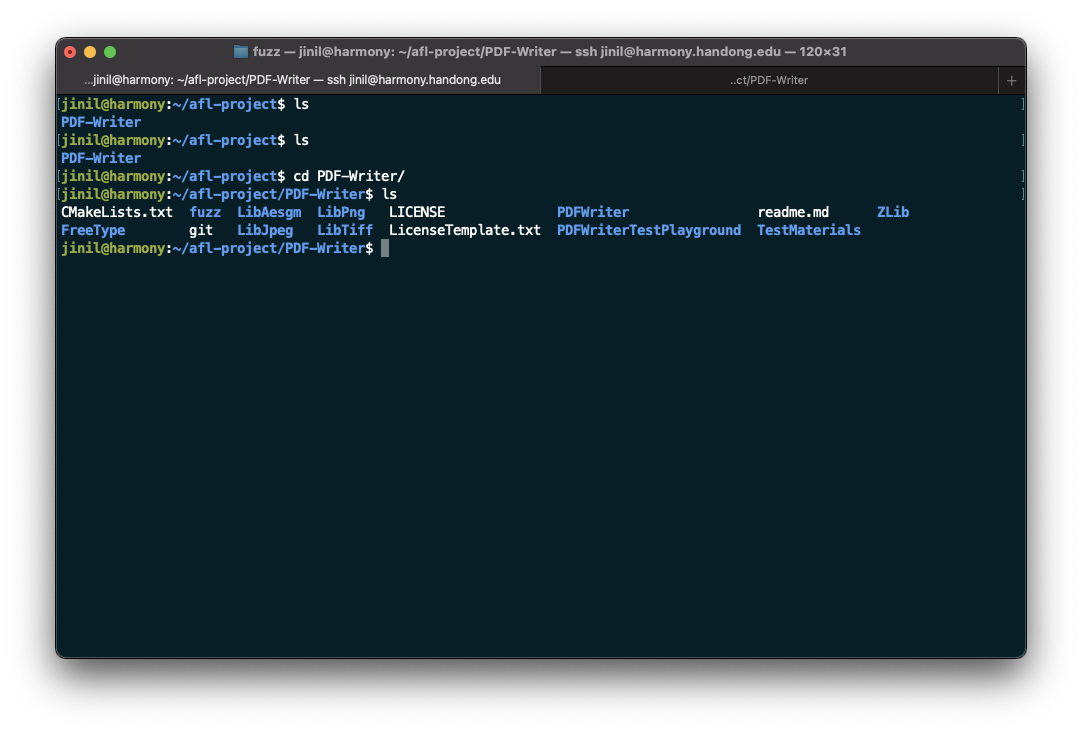 이제 PDF-Writer 디렉터리로 들어가서 fuzz 디렉터리를 만들어줍니다.