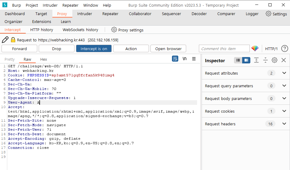 /* HTTP_USER_AGENT를 수정하여 쿼리를 수정 */